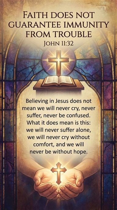 We must learn that believing in Jesus does not mean we will never cry, never suffer, never be confused. What it does mean is this: we will never suffer alone, we will never cry without comfort, and we will never be without hope.
